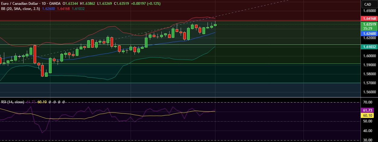 • Immediate resistance is located at 1.6385 (23.6%fib), any close above will push the pair towards 1.6419 (Higher BB).
