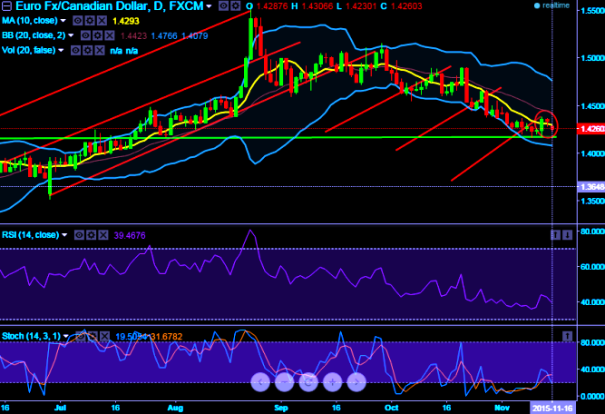 We had earlier also traced out bearish indications to head towards 1.4355 and even the levels up to 1.4150. As the highs of 1.4387 are once again rejected at trendline resistance (see circled area).
