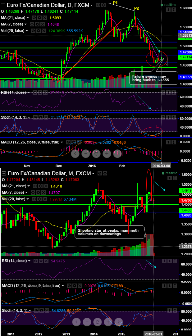 Ever since the pair has formed double top pattern with peak 1 at 1.6105 and peak 2 at 1.5913 levels, long term traders who have their FX receivable exposures are be worried as euro value kept tumbling almost about 9.78% from the highs of 1.6105 to the recent lows of 1.4529.
