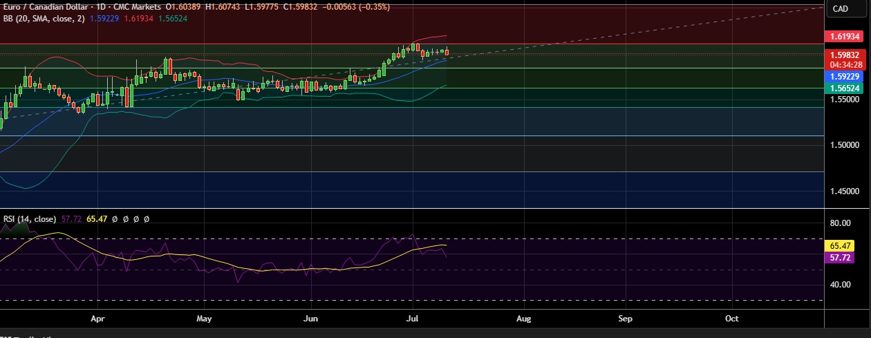 • EUR/CAD eased slightly on Thursday as traders looked for new signals from ongoing EU-U.S. trade negotiations.