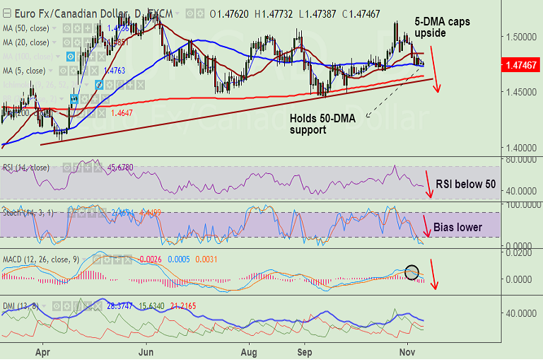 - 50-DMA currently at 1.4738 is major support for EUR/CAD, we see weakness only on break below.