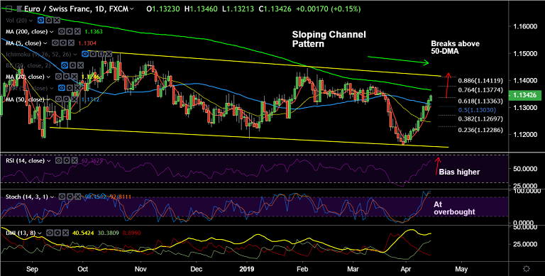 - EUR/CHF is extending gains above 50-DMA, breaks into daily cloud.
