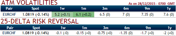 On a 1-3m horizon, our target for this pair is still higher though we have adjusted our Q1 2016 forecast (at 1.10). There onwards trimming of these gains are on the cards which would pull back towards 1.08 levels in next 3-6 months' time frame, one can also have a glance on delta risk reversal nutshell as to know how the OTC markets are positioned towards such bearish anticipation in long run.