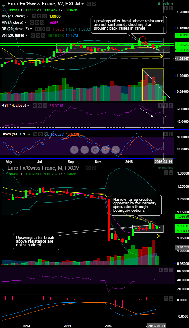Alternatively, we see the trend going in tight range between 1.1024 and 1.0736 which we perceive this as non directional but slightly downward bias since some bearish signals for short term basis are popping up. This has always been extremely tough & risky to have opened position in non-directional trend. But we like to extract profitability even in this narrow range and recommend shorting a straddle using At-The-Money options, thereby, one can benefit from certain returns by shorting both calls and puts.