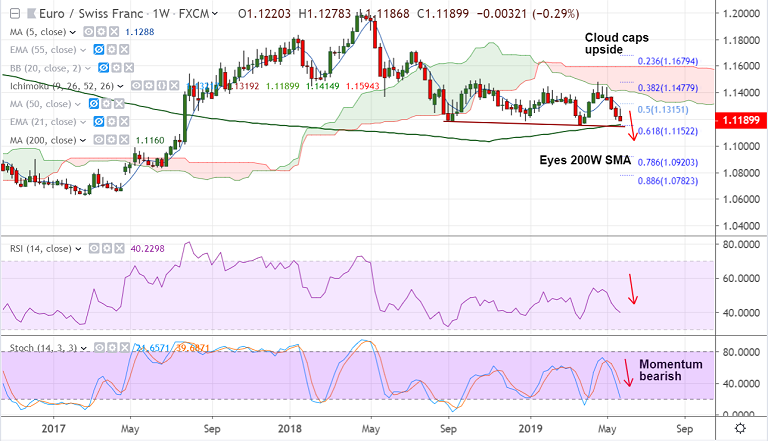 Recovery rejected at weekly cloud and the pair is on track to test 200W SMA at 1.1160.