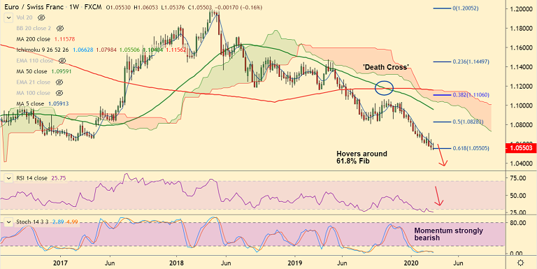 Summary: Further weakness in the pair likely. Drag till 1.0280 (May 2015 low) likely. Upticks could be used to accumulate short positions. Decisive breakout at 200-DMA (currently at 1.0895) could negate near-term bearish bias.