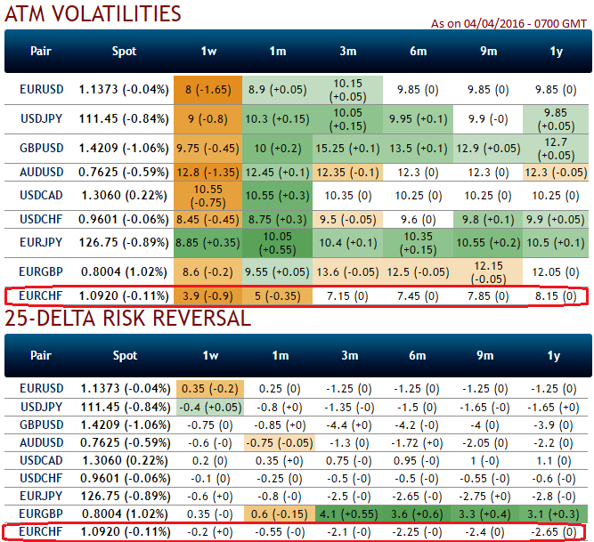 1W ATM IVs is at 3.9%, which is the least among G10 currency space.