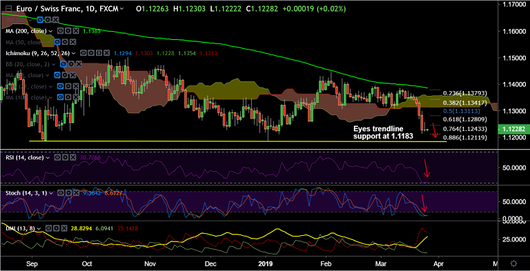 - EUR/CHF is trading in an extremely narrow range, bias remains bearish.