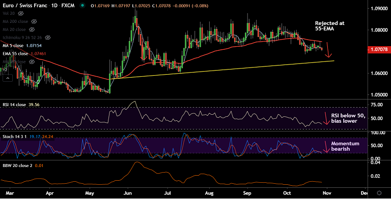 Summary: The single currency under pressure as Germany, France, and possibly the UK mull lockdowns as coronavirus cases spiral across Europe. Technical analysis also supports downside in the pair. Scope for test of 200-DMA at 1.0674. Break below will drag the pair lower.