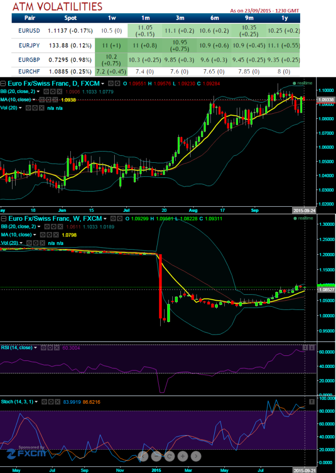As there are no significant data releases scheduled on CHF side for this week, for near future EURCHF may likely to experience low volatility, you can make out from the nutshell; EURCHF is to have the least IV among G10 currency space.