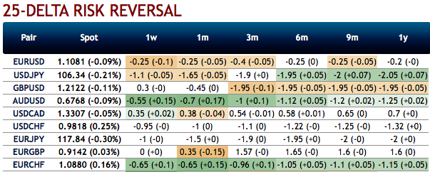 Bullish neutral risk reversals of EURGBP have been observed to the broader bullish risk outlook in the FX OTC markets, this is interpreted as the hedgers are still keen on bullish risks but with mild downside risk sentiment in the near-term (refer to negative risk reversals in 1m tenors which is absolutely in line with our forecasts).