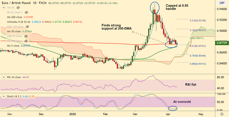 Volatility is rising and break below 200-DMA could drag the pair lower.
