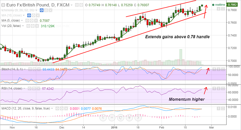 EUR/GBP extends upside, breaks minor resistance at 0.7874 (Jan 6th 2015 highs).