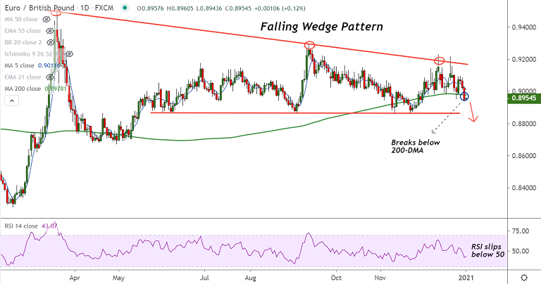 - EUR/GBP closed below 200-DMA on December 31st trade opening downside