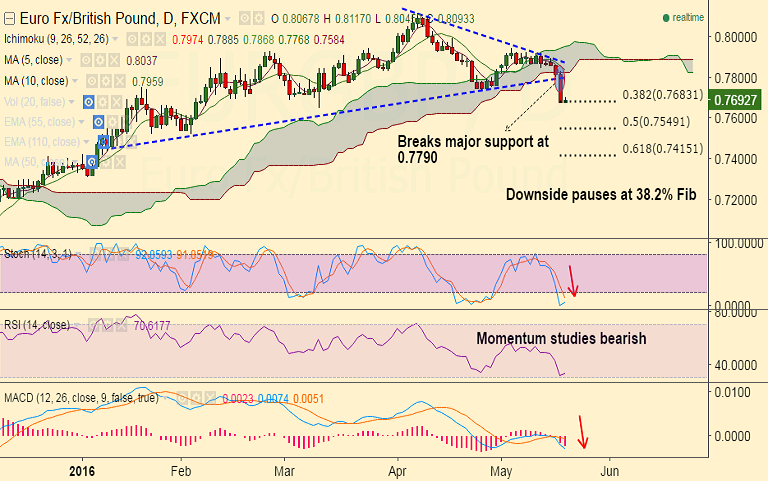 - EUR/GBP saw huge slump in Wednesday's trade. The pair broke major support at 0.7790.