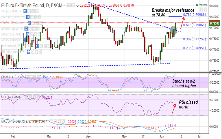 - EUR/GBP extends gains above 0.79 handle after breaking major resistance at 0.7880.