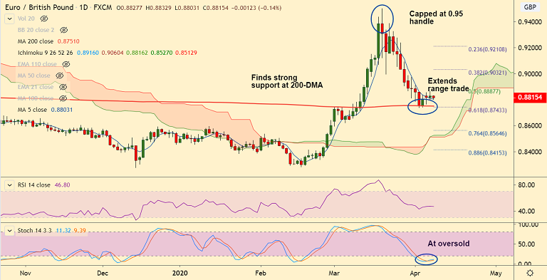 Price action has bounced off 200-DMA support and is holding above 5-DMA. Price action eyes 200H MA at 0.8886, break above confirms near-term bullishness.