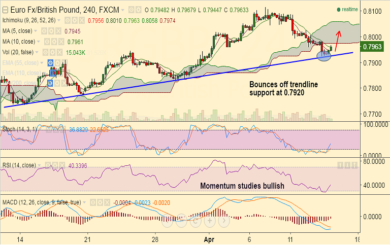 - Immediate resistance is seen at 0.7984 (Apr 13th highs) ahead of 0.7988 (5-DMA). On the downside support is seen at 0.7925 (Apr 13th low) and then 0.7920 (rising trendline).