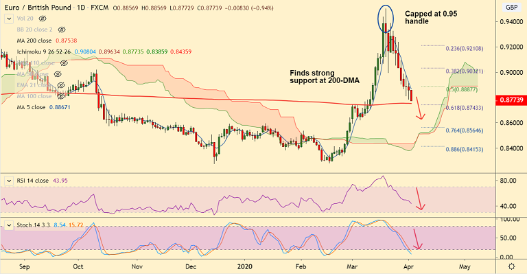 Support levels - 0.8753 (200-DMA), 0.8695 (110-EMA), 0.8672 (50-DMA)