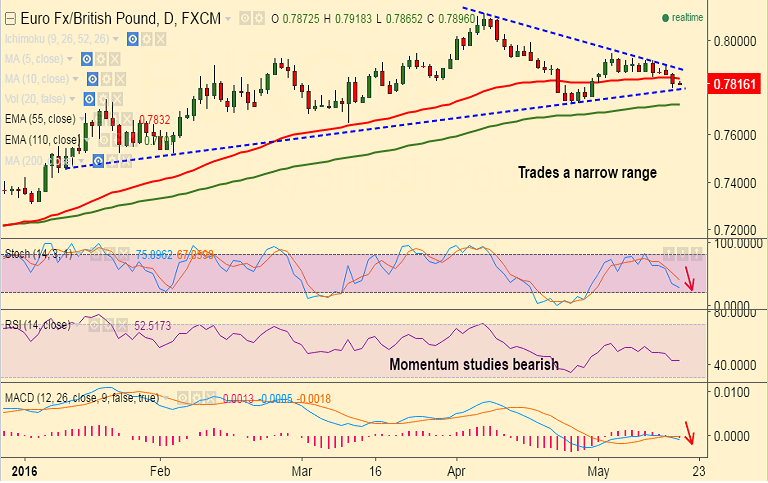 - EUR/GBP trades a tight range on the day, with day's highs at 0.7831 and lows at 0.7813.