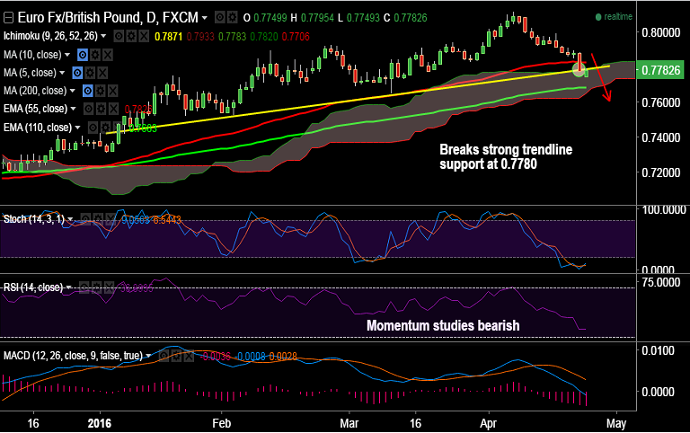 - But post IFO the pair spike to hit session highs at 0.7809. Gains are not sustainable, major moving averages are biased lower, momentum studies are bearish.