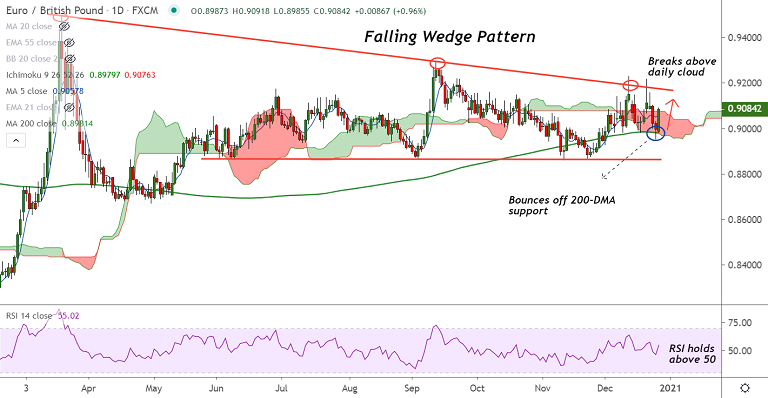 The pair is extending bounce off 200-DMA support and close above daily cloud will fuel further gains.