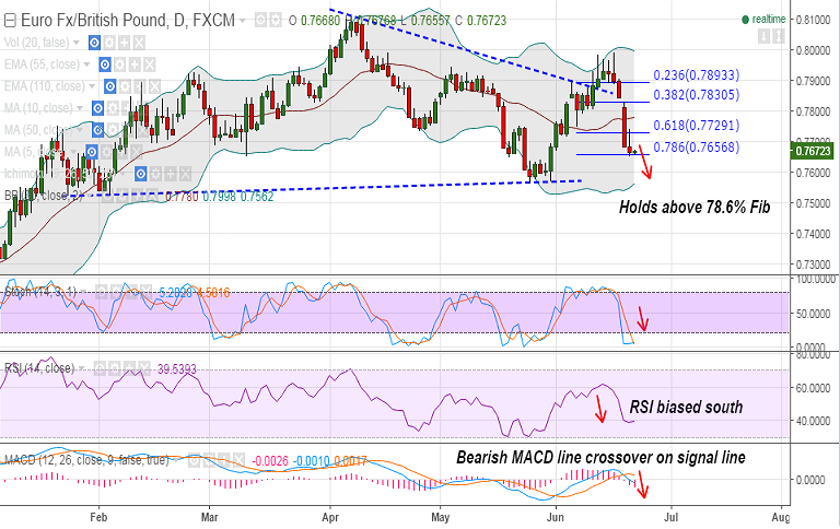 - Downside holds above 78.6% Fibo level at 0.7556, weakness will be seen only on break below.