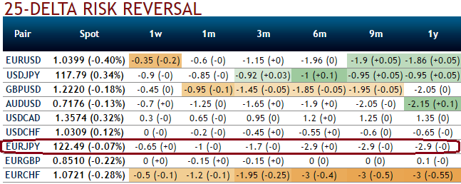 The ATM IVs of this pair is jerking below 7.15% and below 10.5% for 1w and 1m tenors respectively, while negative delta risk reversal numbers are bidding for downside risks.