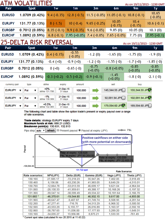 Caution: If you think the pair is going to crash, you should be loading up on put buys in existing strategy. The total cost of the trade is going to be the difference between the prices of the two options. (Compare total cost with strips which involves 3 long sides whereas backspreads have 2 but then caps both directions when IV is increasing).