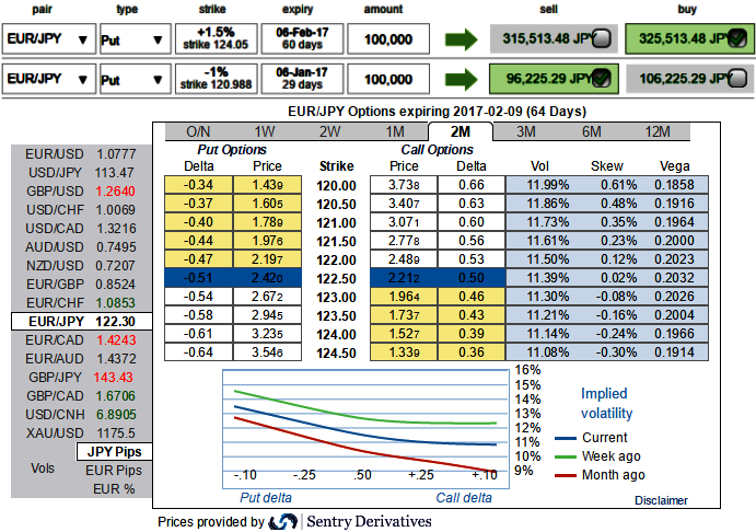 This strategy is typically employed when the options trader is bearish on EURJPY spot FX over the longer term but is neutral to mildly bullish in the near term that is stated above.