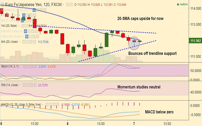 - Upside, for now, seems to be capped by 20-SMA on 2 hourly charts, break above could see upside upto 112.50.