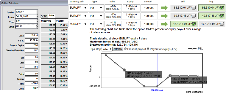 Hence, with the current spot FX is trading at 130.92, the recommendation is to use higher vols to short ITM puts and add an extra-long on put with 1M expiry in the strategy.