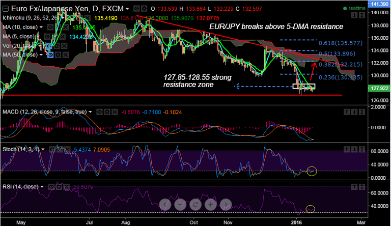 - Technically, the pair has broken above strong 5-DMA resistance which is currently at 127.89.