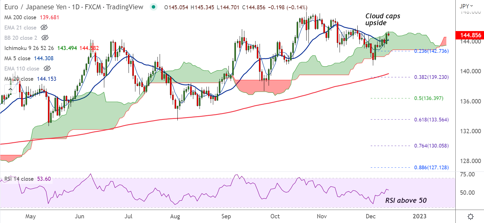 Support - 144.31 (5-DMA), Resistance - 145.27 (Cloud top)