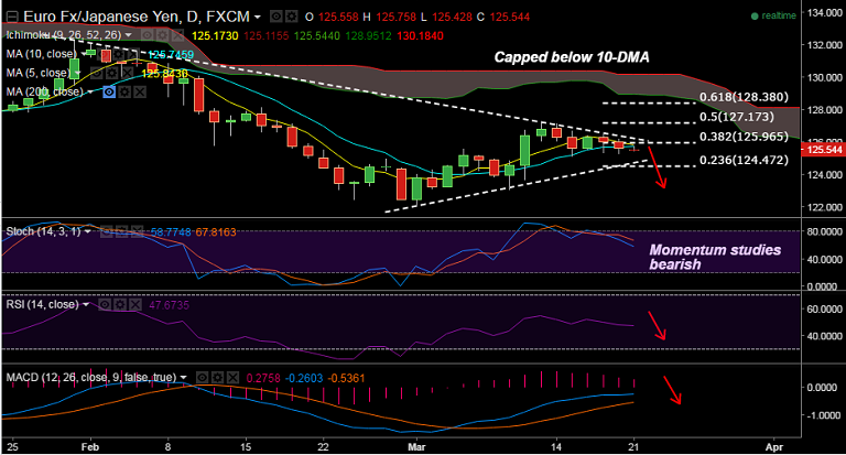 - On the upside, resistances are seen at 125.75 (10-DMA), then 125.84 (5-DMA) and 126.20 (falling trendline).