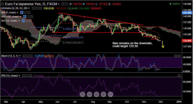 - Immediate resistance is located at 130.16 (5 DMA) ahead of 130.25 (Daily High Nov 27), while supports are seen at 129.67 (Nov 27 low) and further below at 129.63 (76.4% Fibo 126.08-141.06)