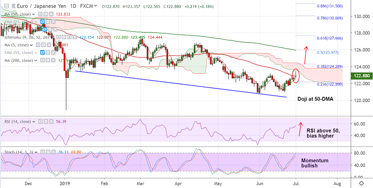 Support levels - 122.48 (5-DMA), 122.20 (23.6% Fib), 122