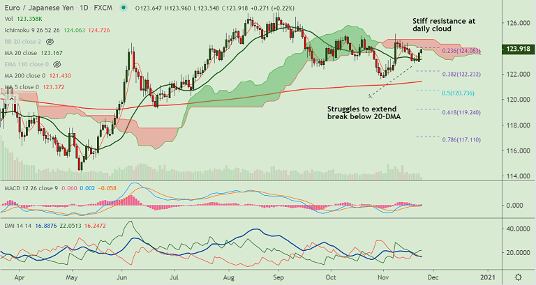 The pair has found strong support at 20-DMA. A decisive break below will see downside resumption. Scope then for dip till 200-DMA.