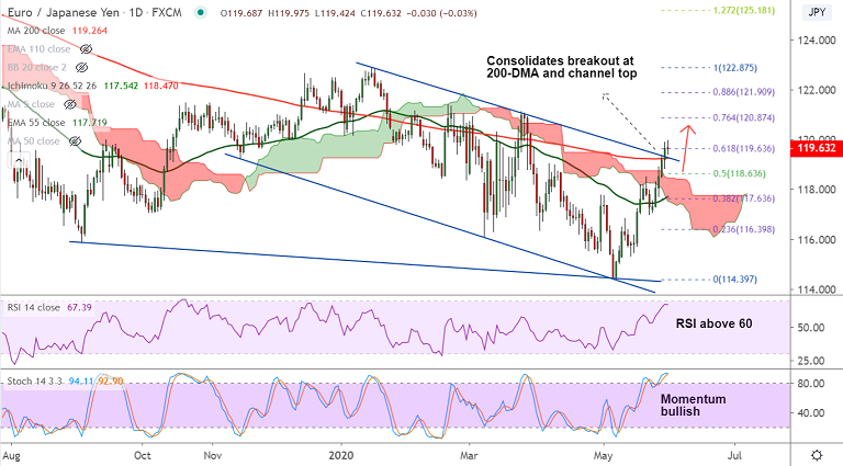 Technical indicators are biased higher and channel and 200-DMA breakout reinforce upside in the pair.