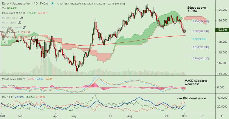 Support levels - 121.15 (200-DMA), 120.73 (50% Fib), 119.24 (61.8% Fib)