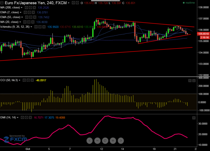 - EUR/JPY is facing major trend line support around 135.50 (trend line joining 134.79 and 134.95) and weakness can be seen only below this level.