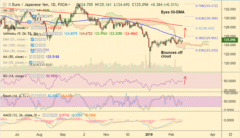 - We see stiff resistance at 50-DMA at 125.51. Break above will propel the pair higher.