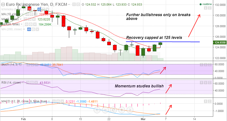 FxWirePro: EUR/JPY recovery capped at 125 levels, further upside only on breaks above