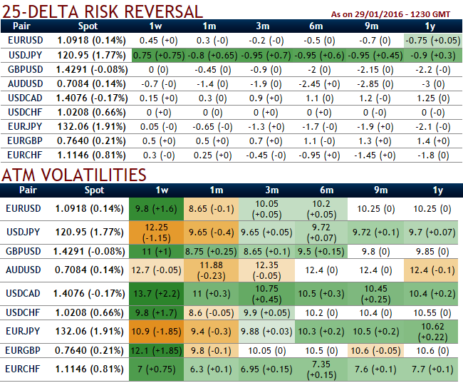 Our recent observation on the IV factor of ATM contracts with 1w expiry of Yen denominated currency crosses tops the list and same is the case with risk reversal table for highest hedging activities eyeing downside risks.