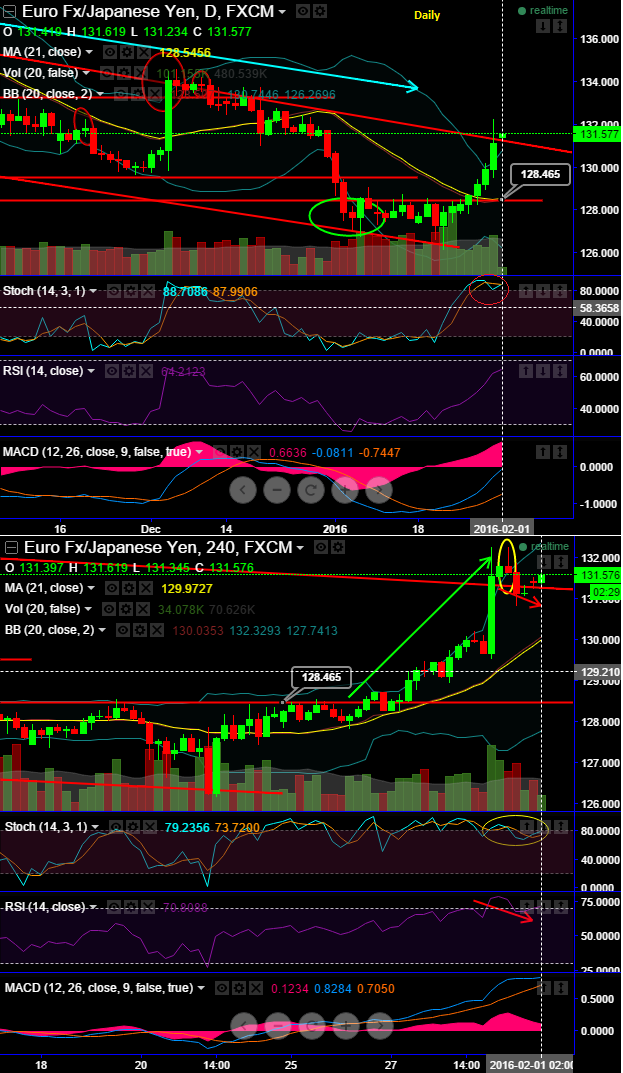 Hence, keeping 128.465 in mind bears can speculate this pair downwards, but there is a clear sign of bulls creating selling opportunities for long term bears as a result of overbought pressures So overall, EUR/JPY is blistering up with heaps of bearish indications by leading oscillators in addition.