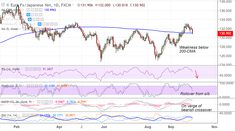 - The pair finds strong support at 131 levels (converged 21-EMA and 200-DMA), break below to see weakness.