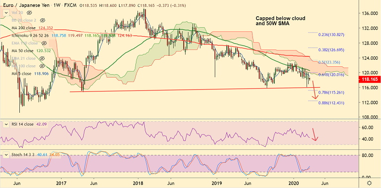 The pair has failed to break past 21W EMA and weekly cloud and 5W SMA has turned sharply lower.