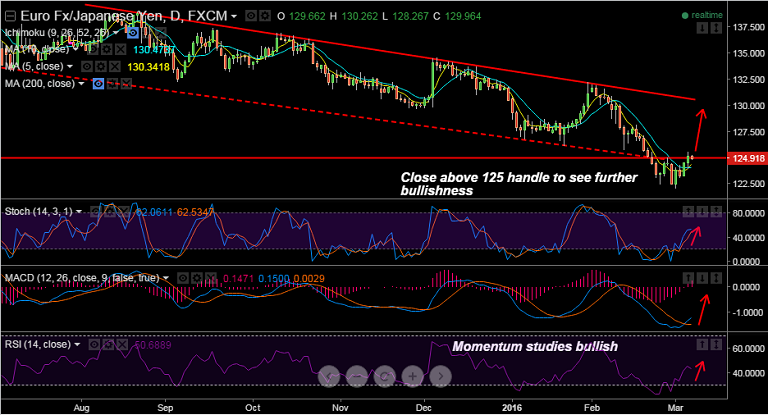 Recommendation: We would recommend taking long positions on close above 125, SL: 124.35, TP: 125.55/126