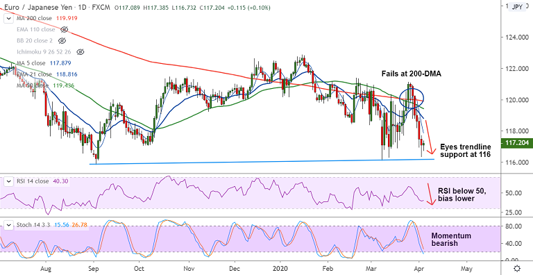 EUR/JPY was trading 0.12% higher on the day at 117.23 at around 10:10 GMT, bias remains bearish.