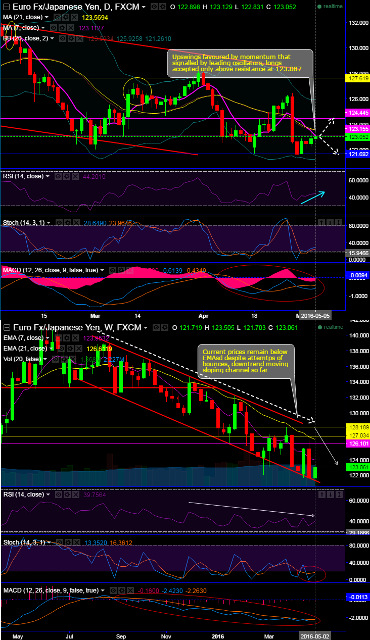 So, we view the current price rallies as momentary gains as the major downtrend offers more shorting opportunities, yes we are referring about last 3-4 days jump from the lows of 121.680 to the current 123.081 levels.
